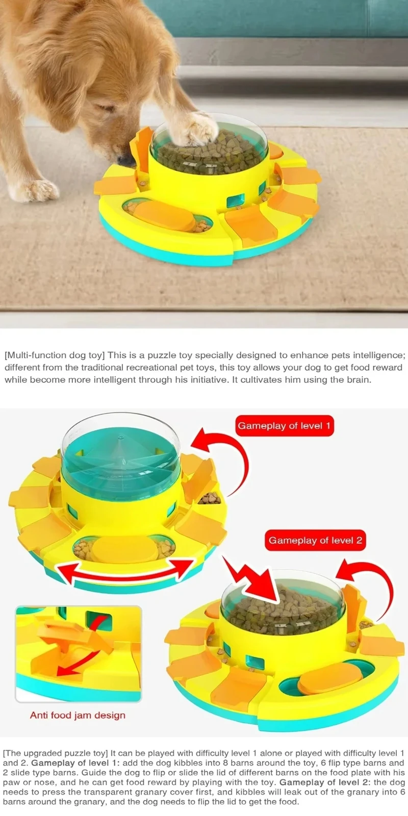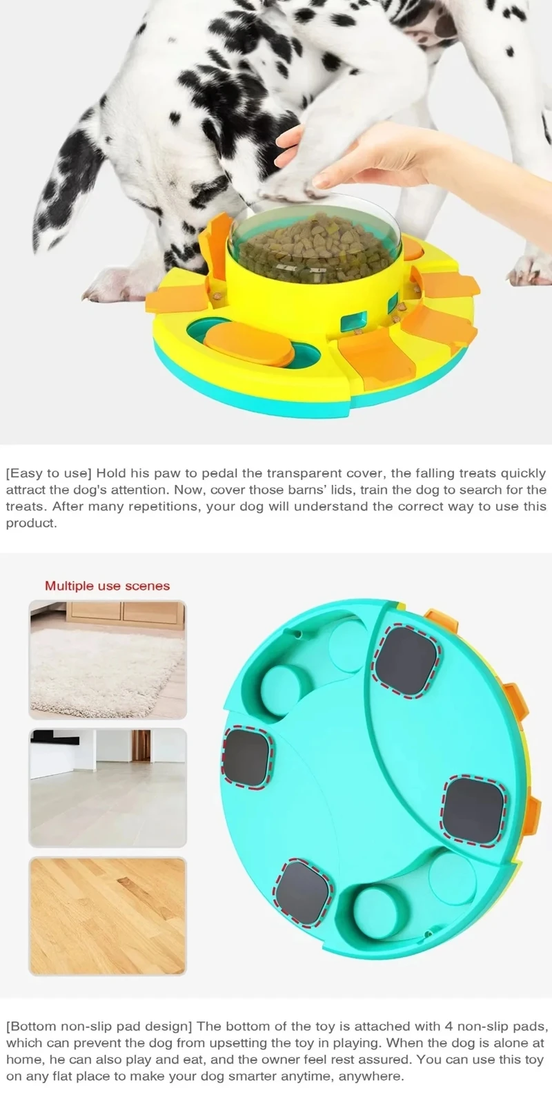 Large capacity slow feeder bowl reduces eating speed 10x, trains intelligence & prevents bloating. Non-tip base, food-grade plastic, and easy to clean.