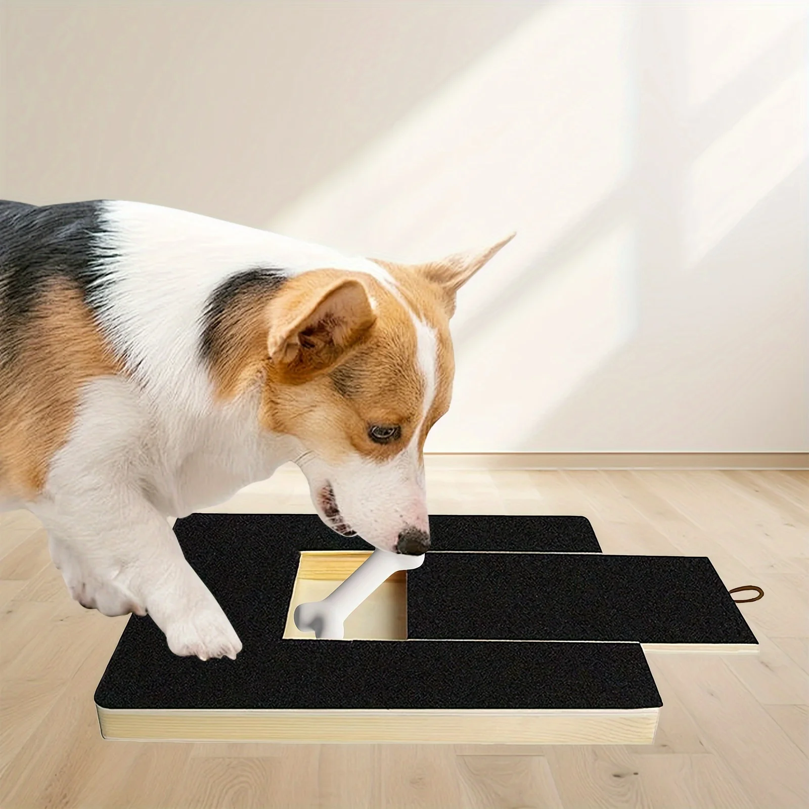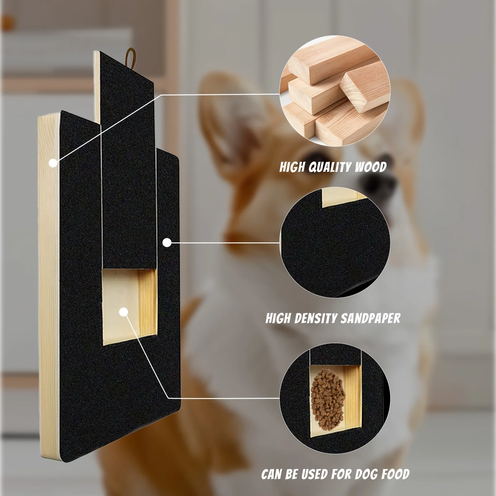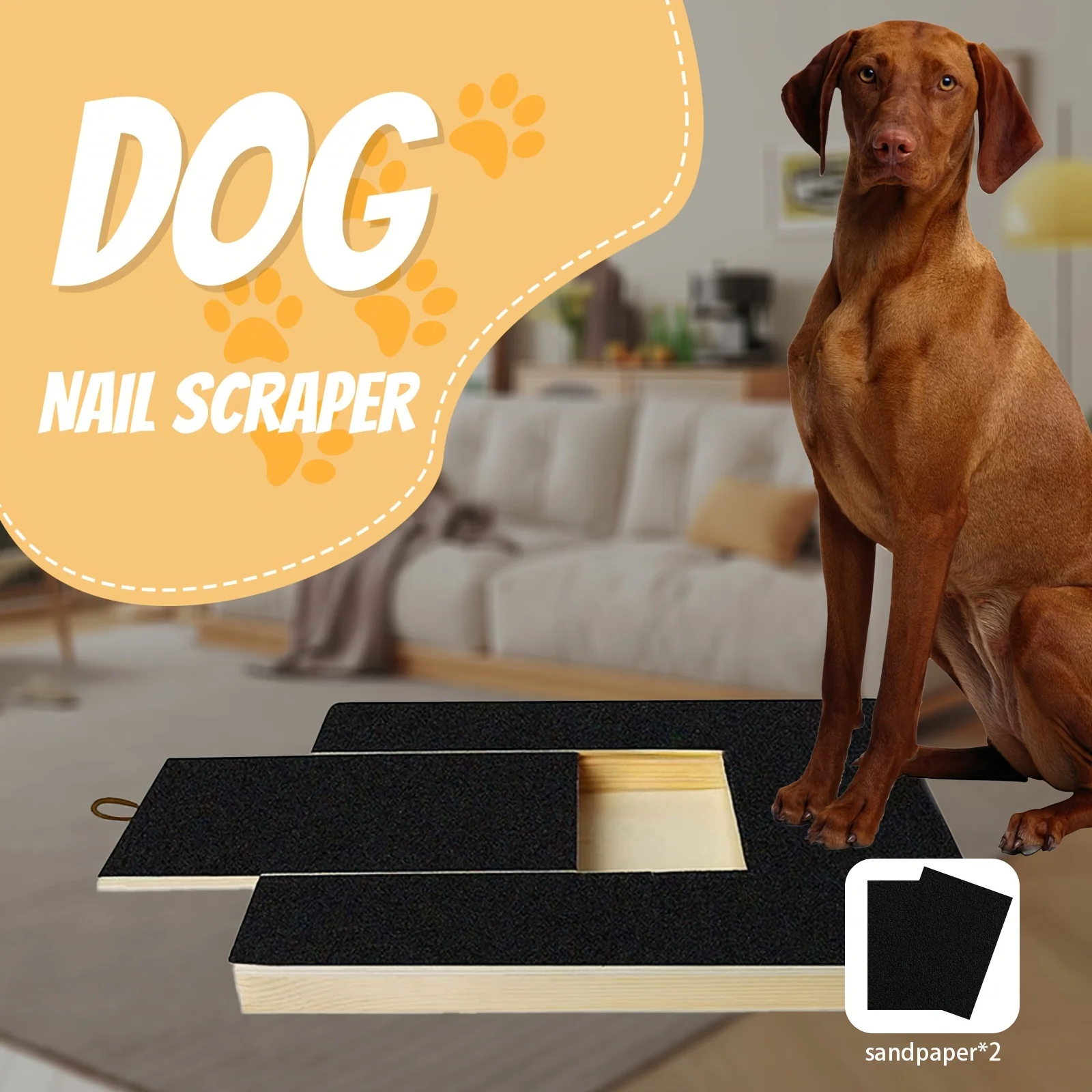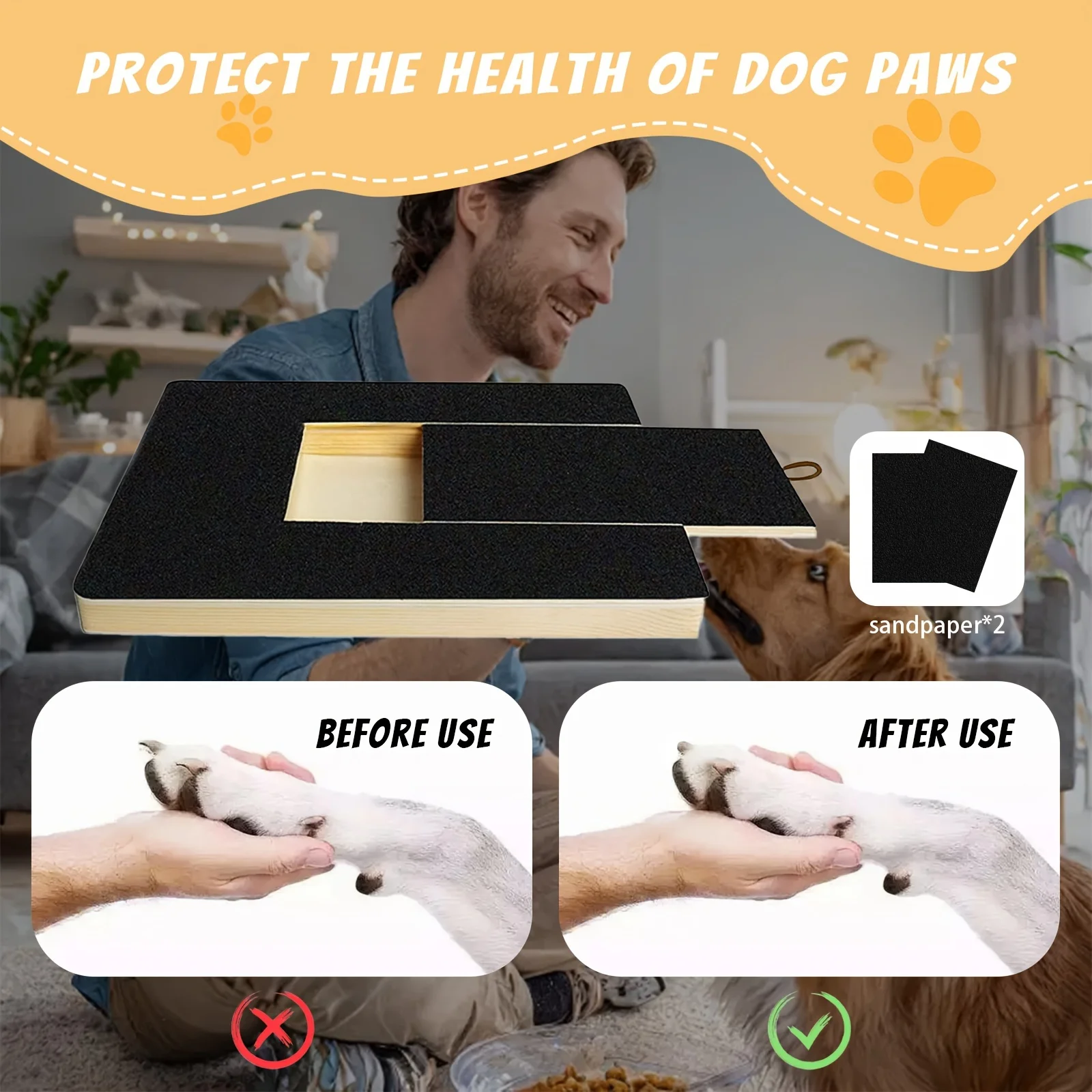 Adjustable wooden scratch pad for dogs to file nails naturally. Protects floors, includes extra sandpaper, and safe for all breeds.