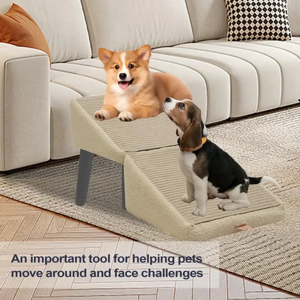 Versatile wooden pet stairs with non-slip surface. Folds for storage, supports up to [weight] lbs for safe couch or bed access.