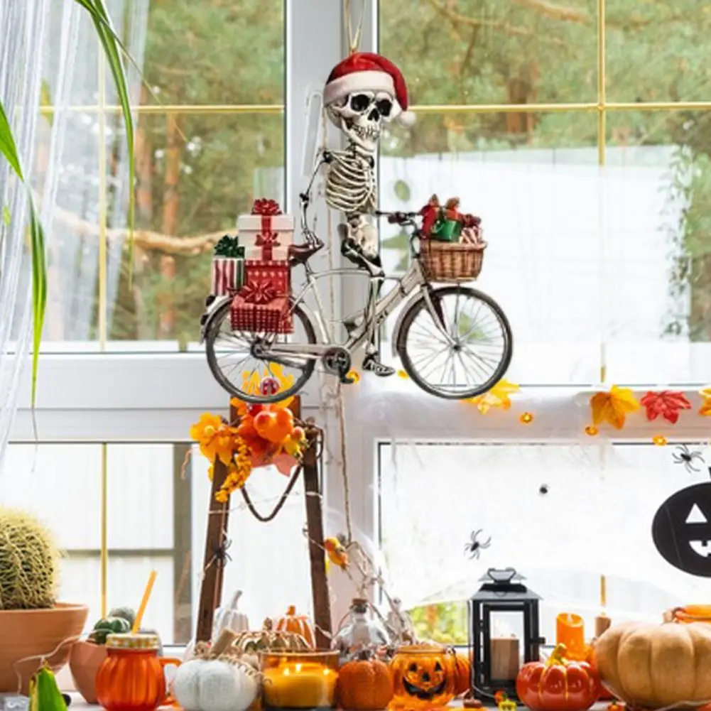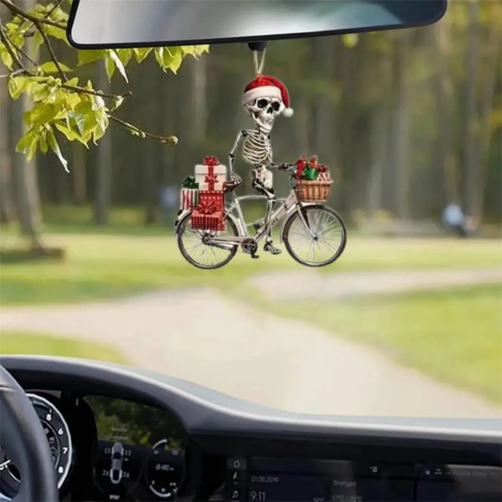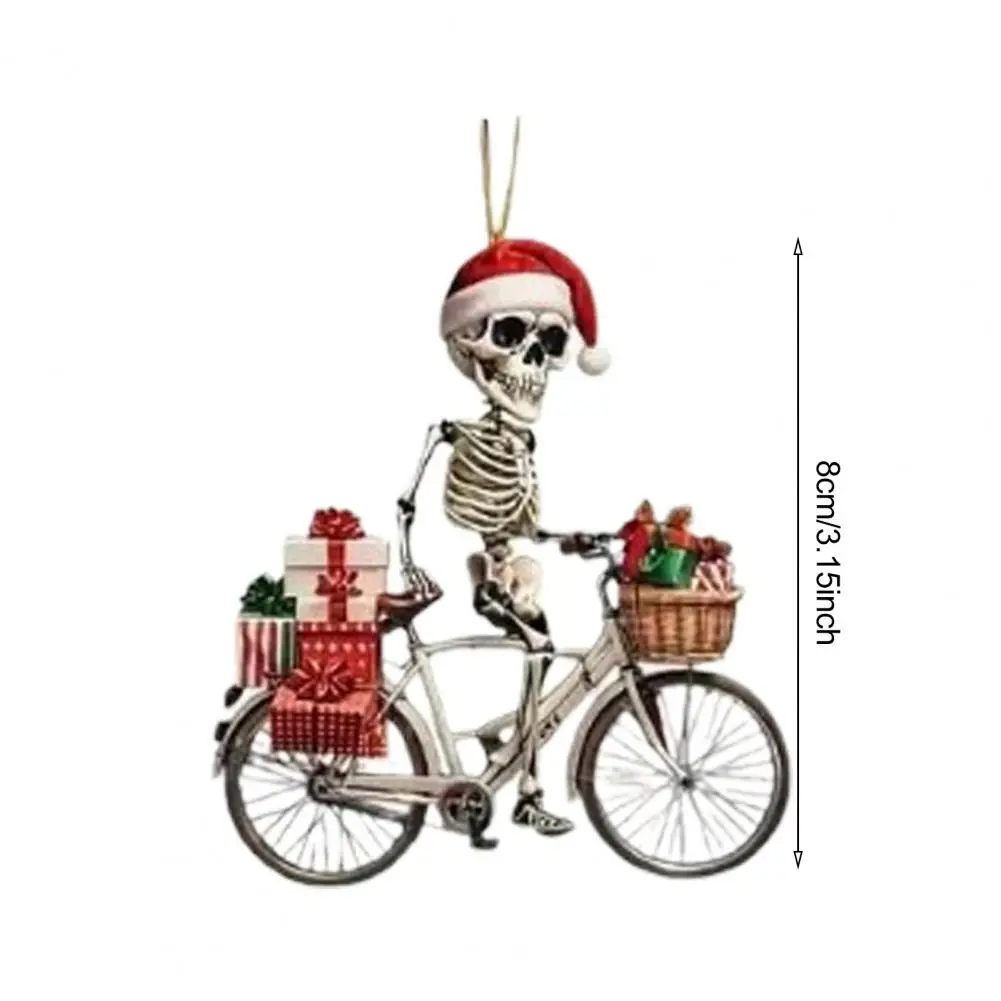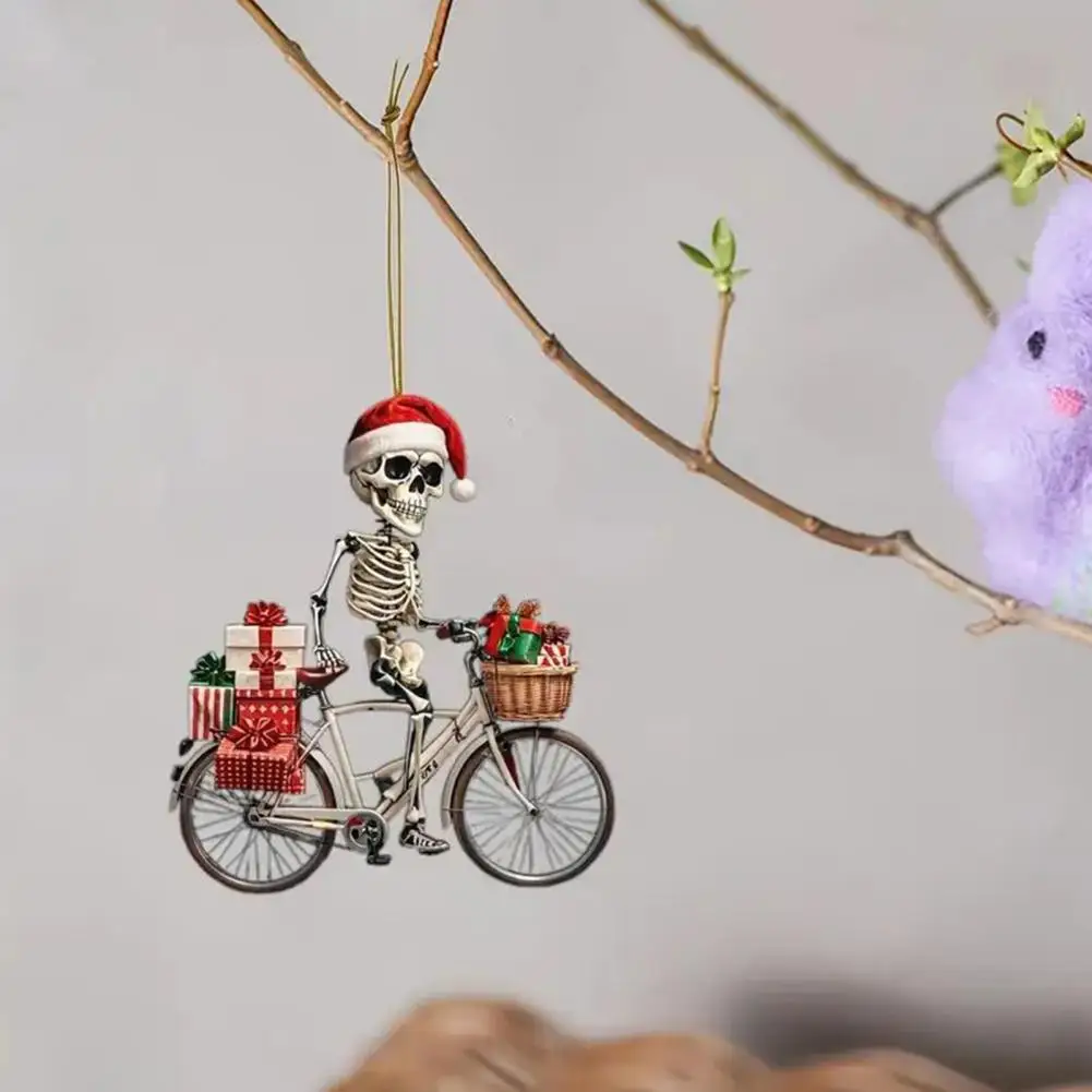 Unique acrylic Christmas ornament—Santa skeleton rides a motorcycle! Durable, weather-resistant & perfect for indoor/outside tree decor.