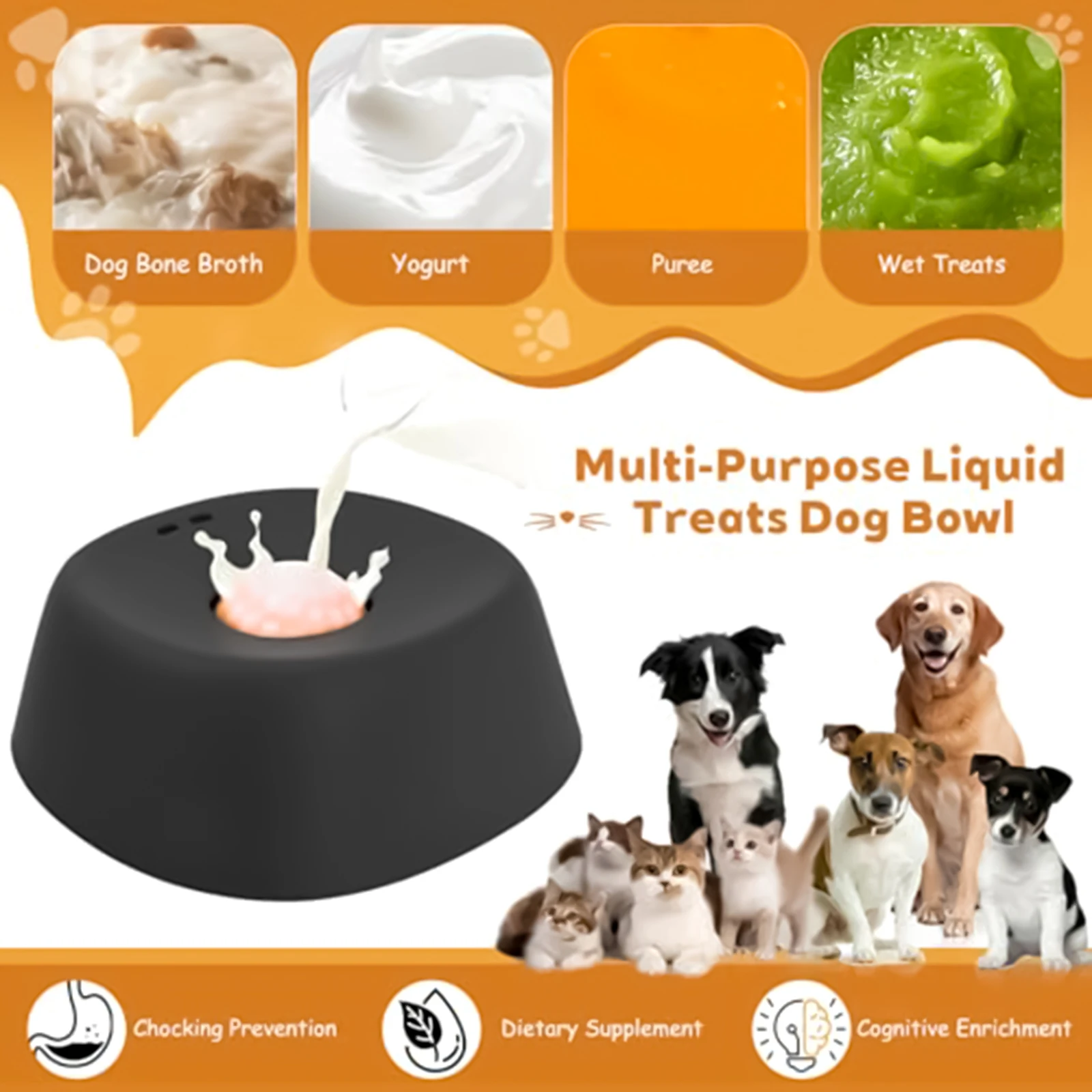 Textured silicone lick bowl slows eating, prevents bloating & eases digestion. Non-slip base, dishwasher-safe for easy cleaning.