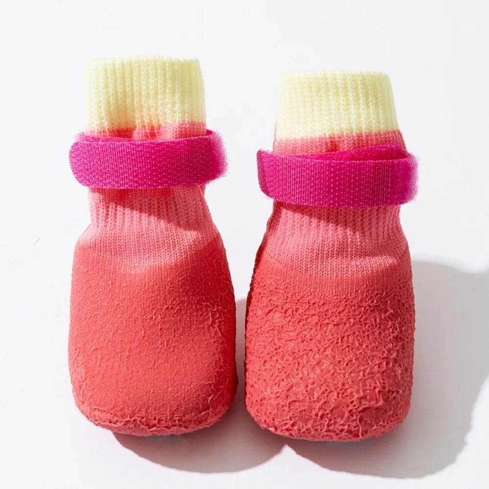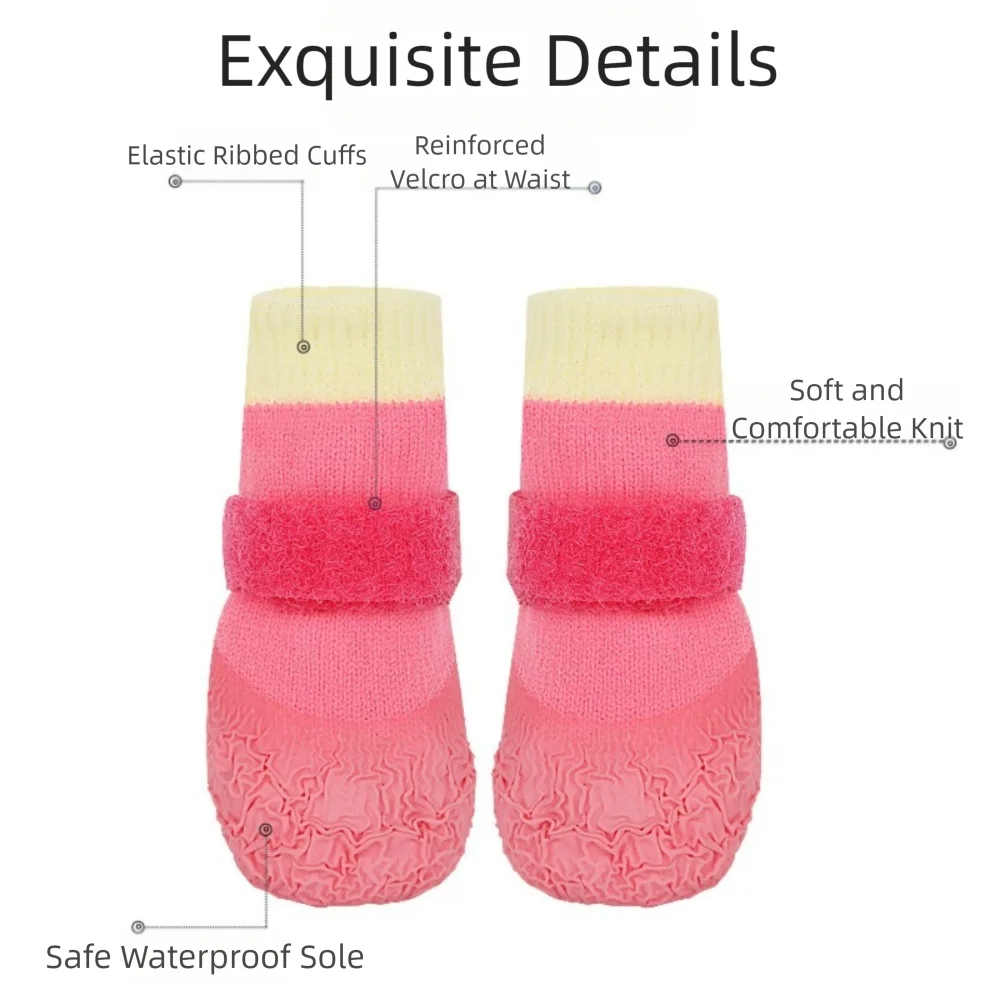 Non-slip, waterproof dog socks with adjustable straps. 100% cotton for breathable comfort and secure grip on slippery floors.